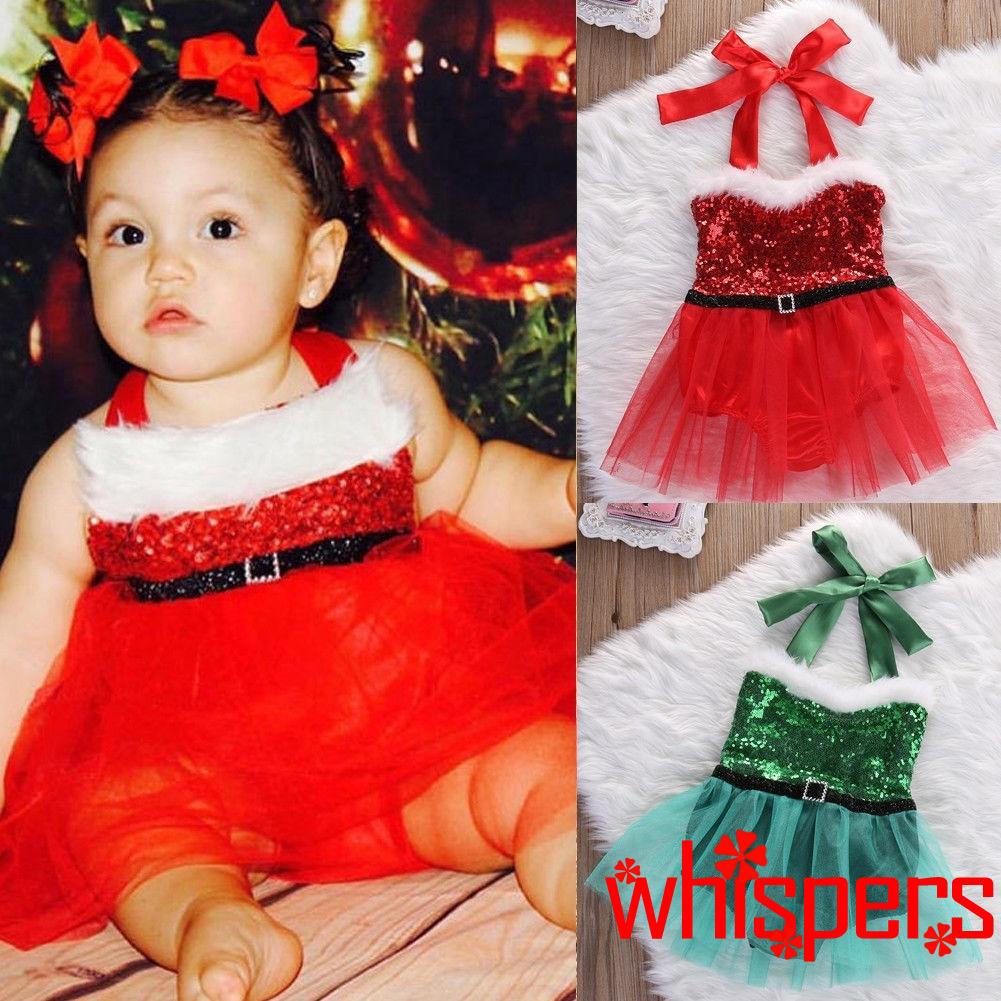Nfw Xmas Newborn Baby Kids Girl Romper Santa Claus Tulle Tutu Dress Outfits Shopee Malaysia